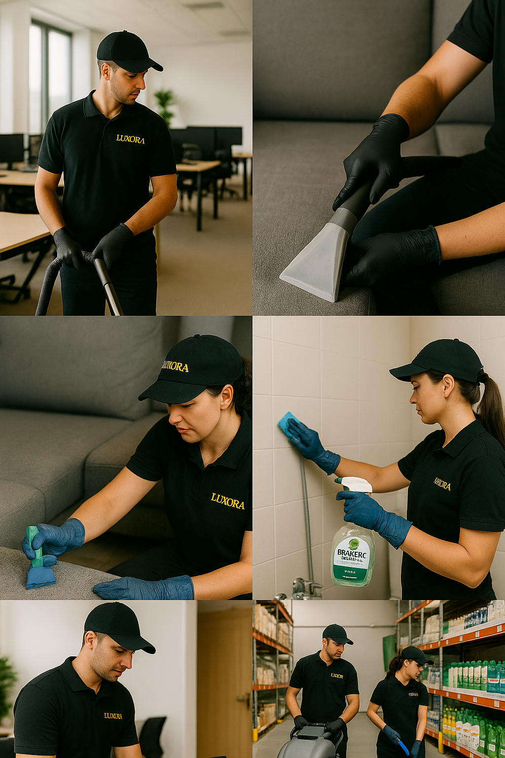 Почистване на мека мебел и килими със съвременна техника, основно измиване и полиране на подови настилки, измиване на прозорци и витрини, премахване на прах от повърхности, дезинфекция и освежаване на санитарни помещения, както и събиране и извозване на битови отпадъци.
